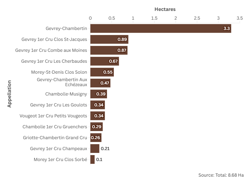 Fourrier owns ten hectares, the majority of which are located within the municipality of Gevrey-Chambertin including plots of an excellent 1er Cru - Clos Saint Jacques and Grand Crus of Griotte Chambertin and Chambertin. He also owns few plots in Morey-Saint-Denis, Chambolle-Musigny and Vougeot.
